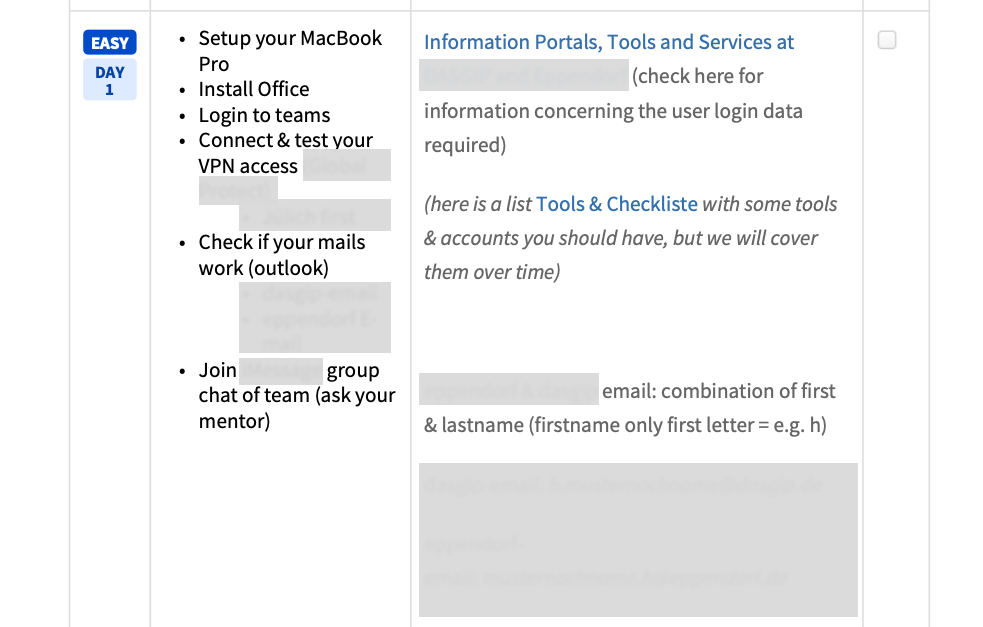In addition, I crafted an onboarding template for new colleagues. This included links to important resources, names of contact people, to do’s placed on a timeline (increasing complexity the longer the colleague was at eppendorf) as well as establishing a “meet and greet” for topics and topic owners.